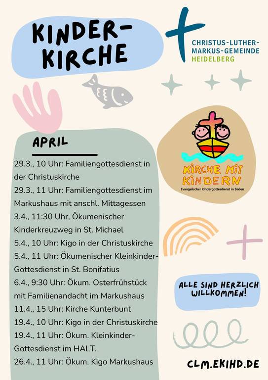5.4., 10 Uhr: Kindergottesdienst in der Christuskirche